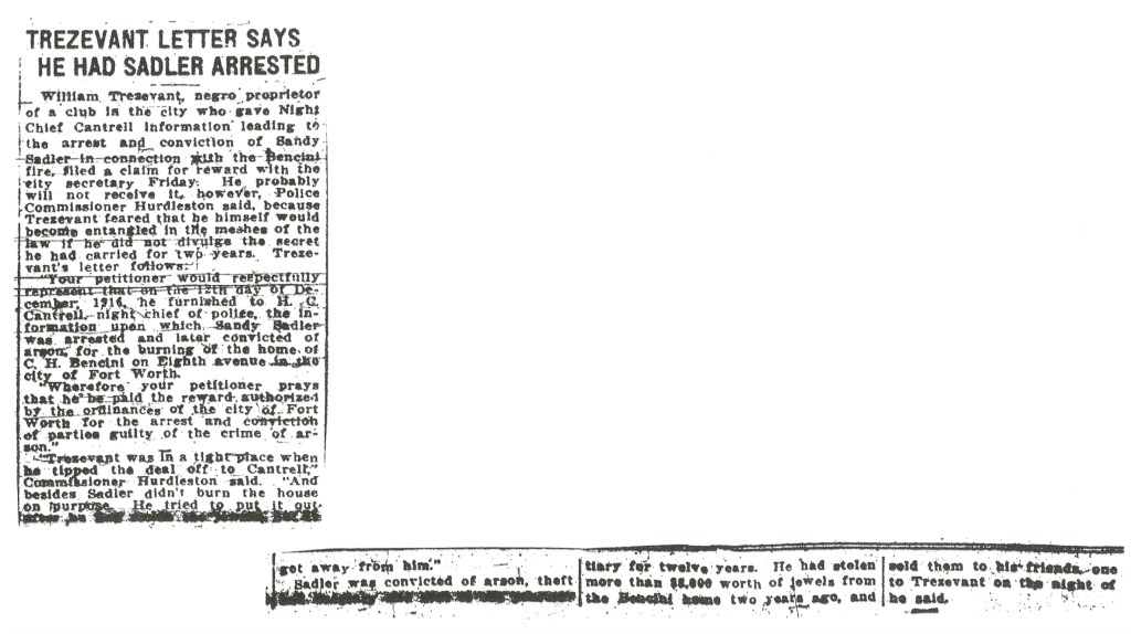 In 1916, William Jr. provided the chief of the police department with information that led to the arrest and conviction of Sandy Sadler. The following is an newspaper clipping regarding the event. The article referred to William Jr. as a proprietor of a club.